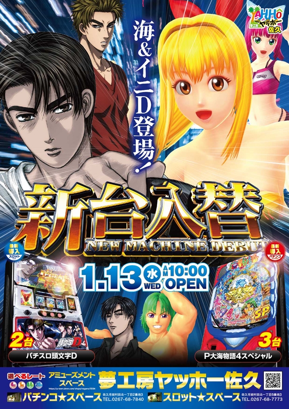 スロットスペースには【パチスロ頭文字D】が新登場!