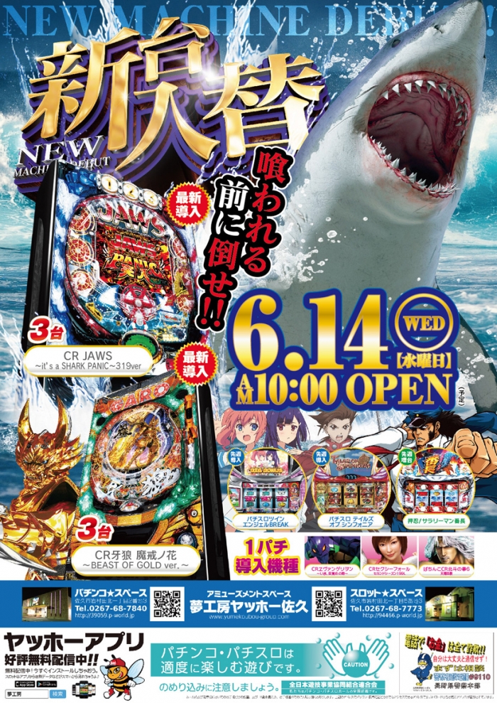 ヤッホー佐久パチンコ、新台導入!