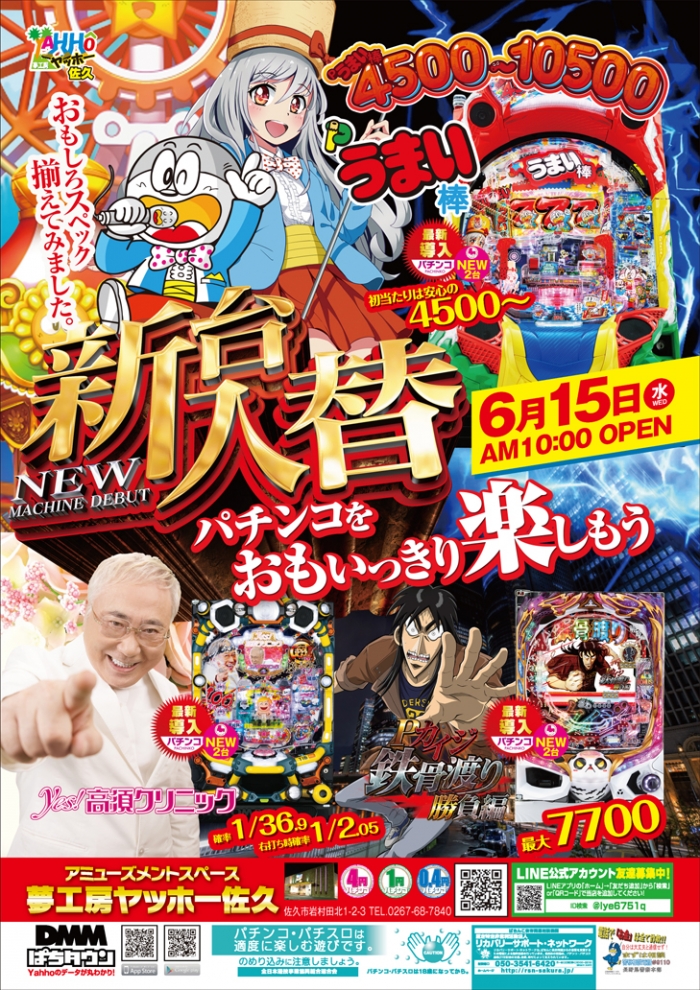 【Pうまい棒4500から10500V1】【Pyes!高須クリニックCS2】【Pカイジ鉄骨渡り勝負編V1B】の3機種です。