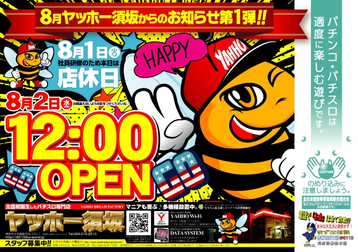 ヤッホー須坂、8月2日12時オープンします。