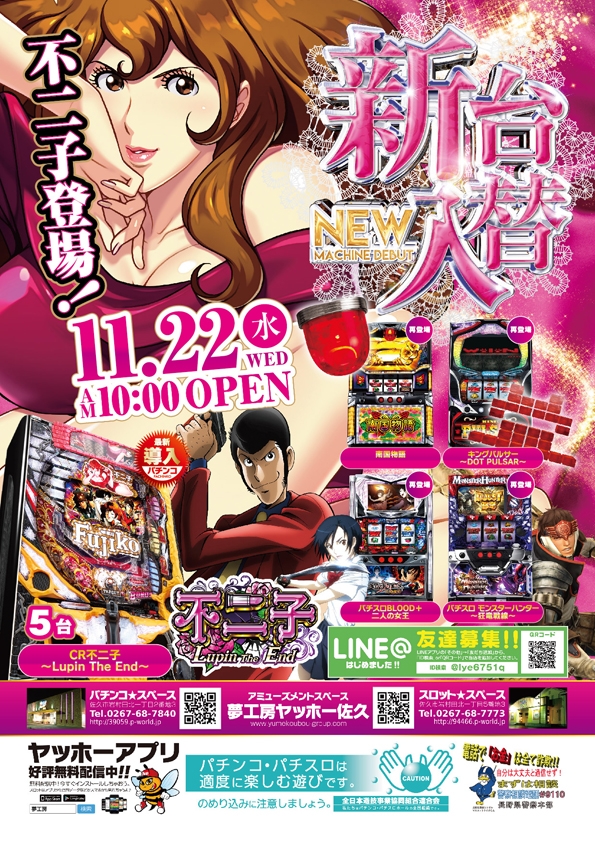 パチンコスペースに【CR不二子~Lupin The End~】がデビュー!