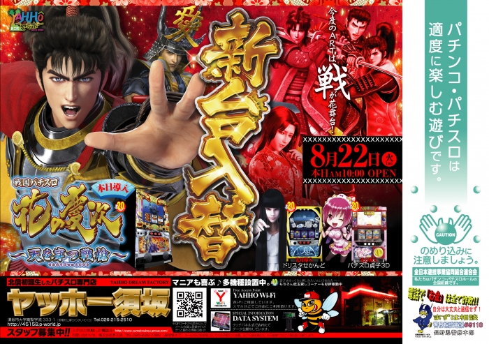 ヤッホー須坂が【戦国パチスロ花の慶次~天を穿つ戦槍~】が新登場!