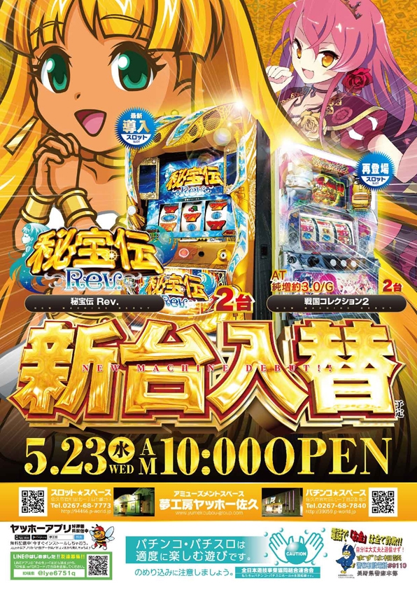 ヤッホー佐久スロットスペースに、「秘宝伝Rev」が新台導入!