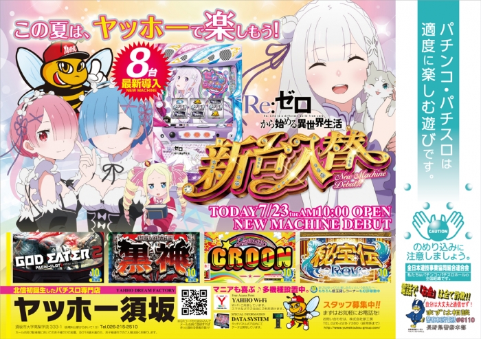ヤッホー須坂が新台入替!【Re:ゼロから始める異世界生活】を8台導入。