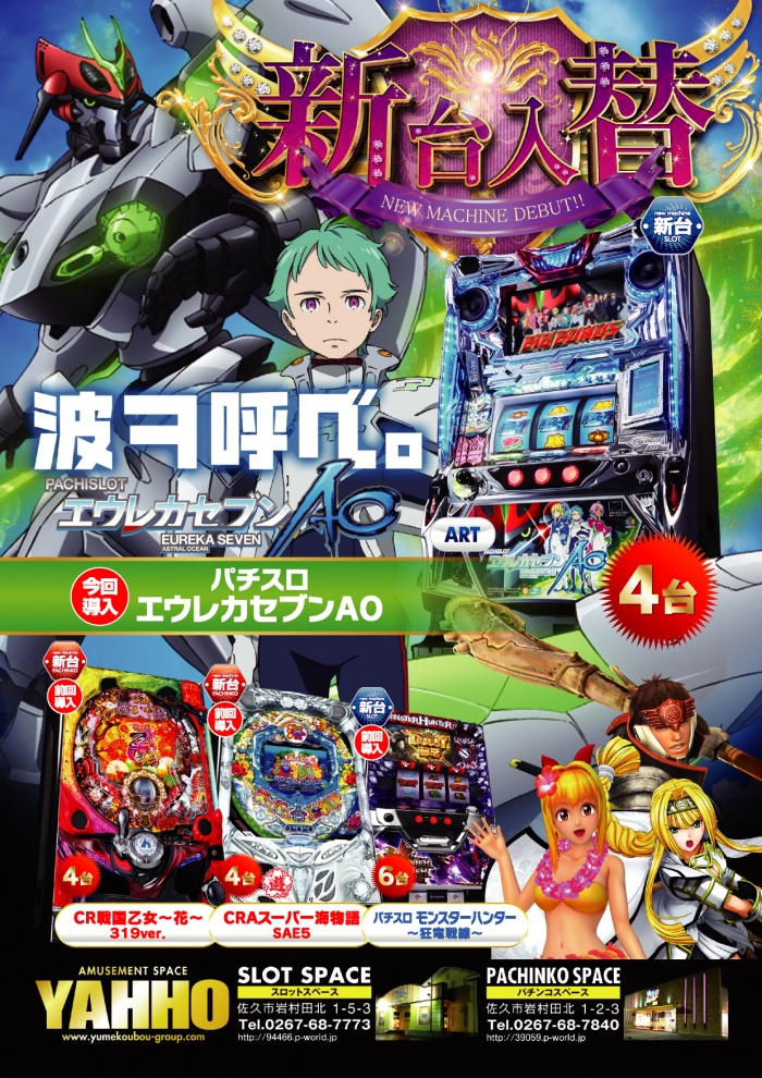ヤッホー佐久スロットスペースに【エウレカセブンAO】が新登場!