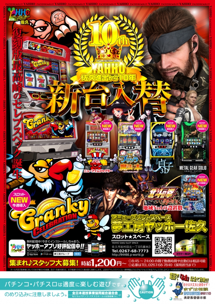 ヤッホー佐久スロットスペースに【クランキーセレブレーション】が新登場!2週連続の新台入替に注目ください。