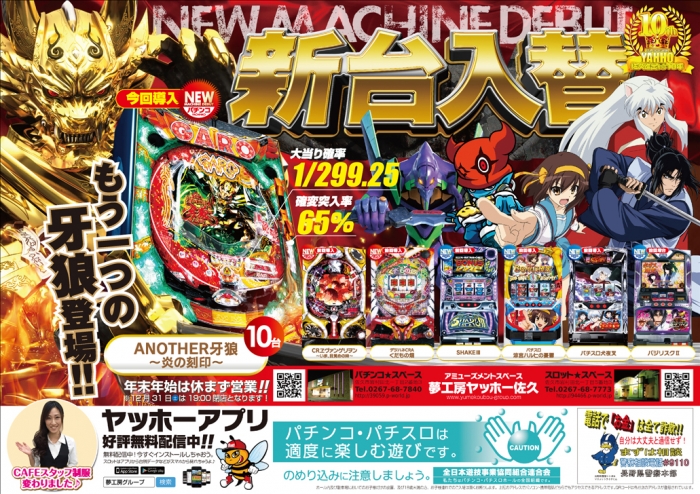 パチンコスペース本年ラストの新台入替は【CR ANOTHER牙狼~炎の刻印~】新登場!