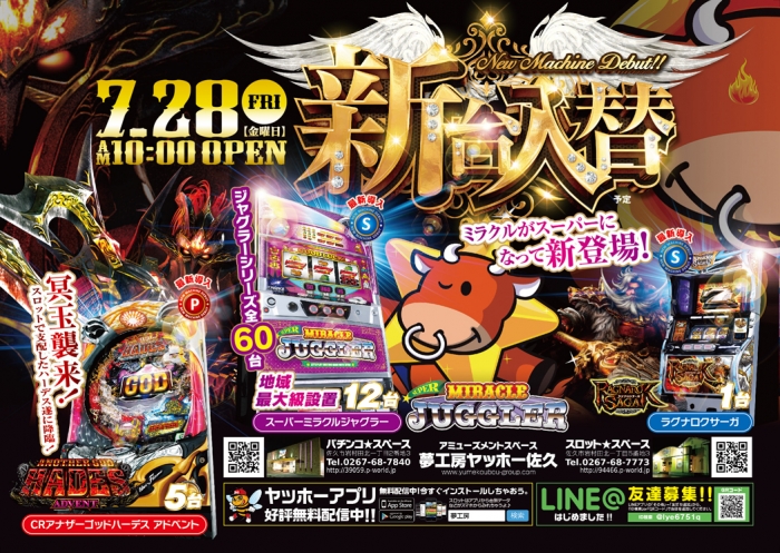 ヤッホー佐久、両店同時新台入替!