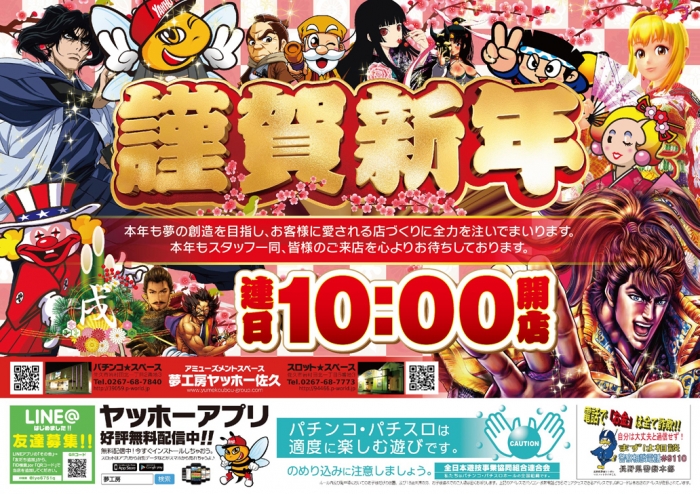 夢工房ヤッホーは2018年1月1日より全店好評稼働中!連日10:00オープン!