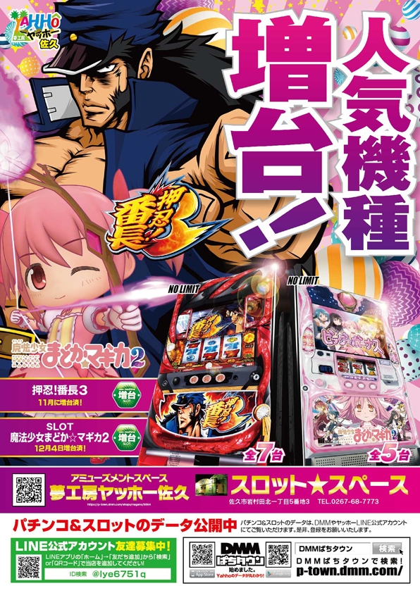 ヤッホー佐久スロットスペースでは「押忍!番長3」を11月に増台!
