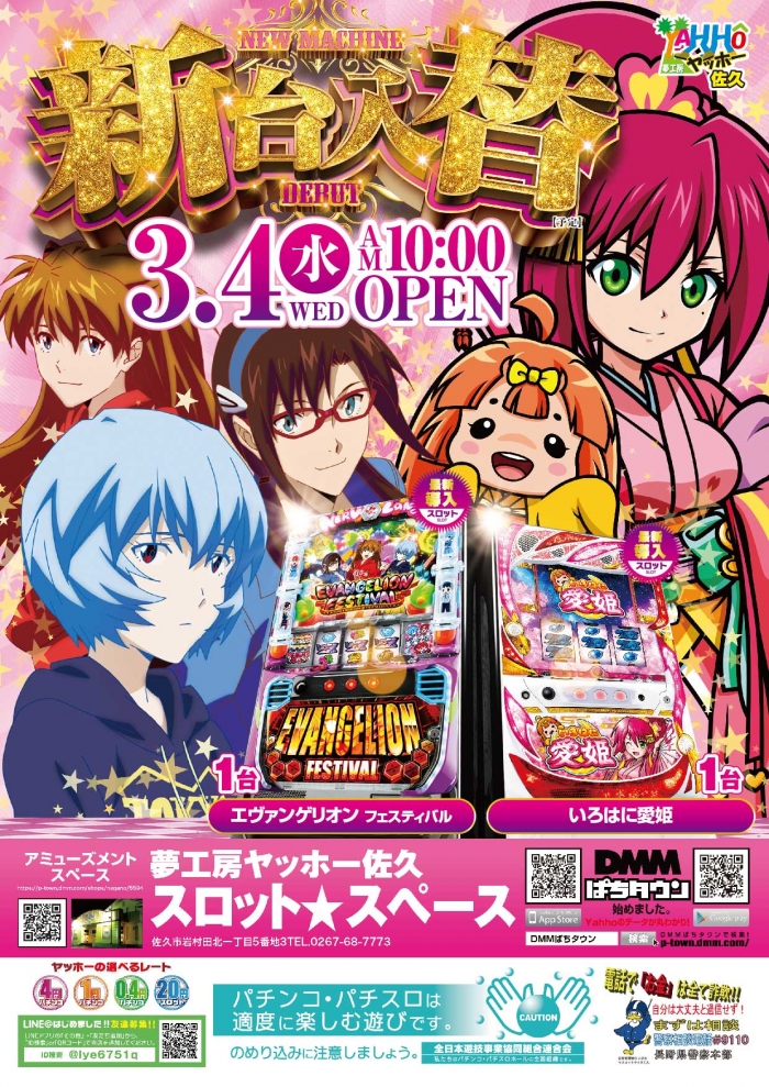 スロットスペースに【エヴァンゲリオン フェスティバル】【いろはに愛姫】が新登場!