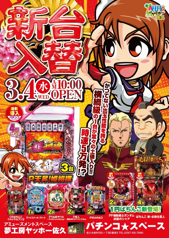 パチンコスペースに【P天昇!姫相撲】が新登場!さらにリクエスト機種として【CRぱちんこウルトラセブン2】【Pハイスクール・フリート】【Pうる星やつら~ラムのLoveSong~】【P亜人~衝戟の全突フルスペック!~319ver.】【P炎の烈火3】が登場!