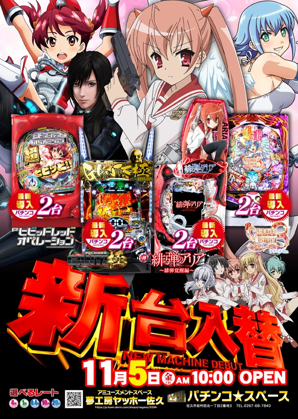 パチンコスペースに【P緋弾のアリア ~緋弾覚醒編~】【ぱちんこGANTZ極】【Pビビッドレッドオペレーション】【Pクイーンズブレイド3 ナナエルVer.】が新登場!