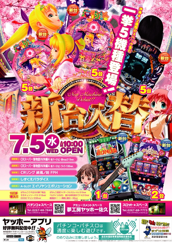 パチンコスペースに【CRスーパー海物語IN沖縄4 桜バージョン 新max319ver.】【CRスーパー海物語IN沖縄4 桜バージョン ライト199ver.】【CRリング 終焉ノ刻 FPH】が新登場!