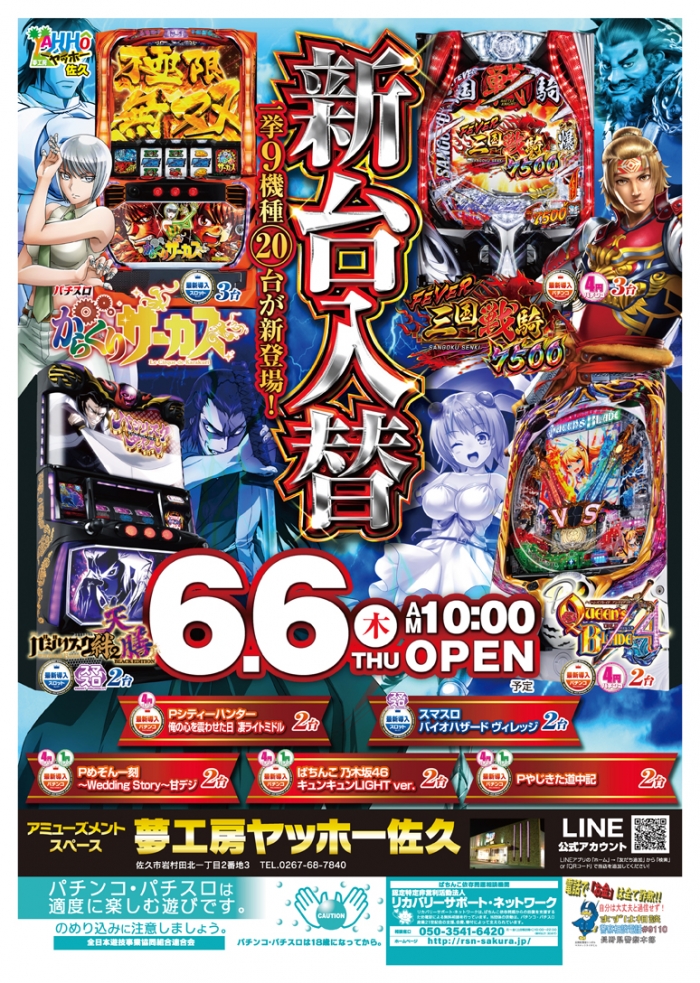 ヤッホー佐久!本日9機種20台の新台入替