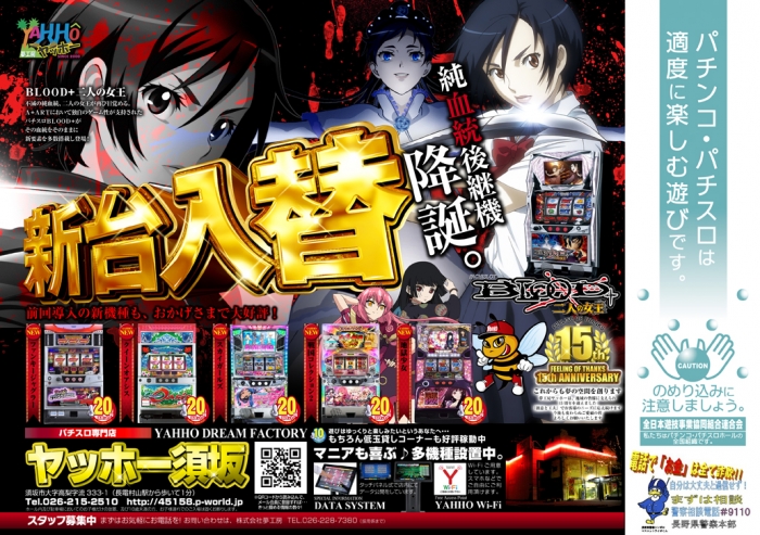 ヤッホー須坂に【パチスロBLOOD+二人の女王】が新登場!!!