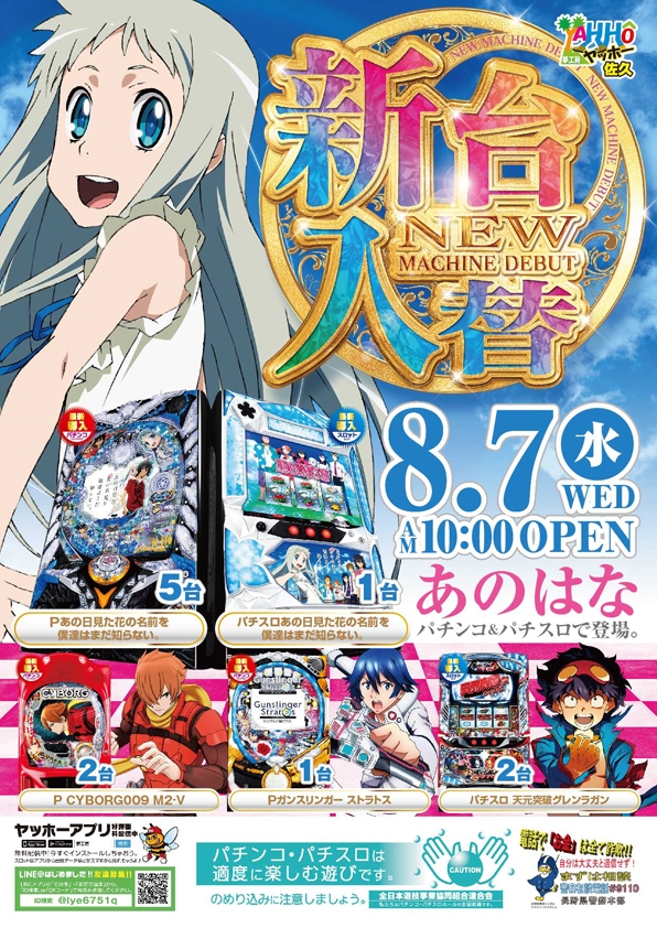 パチンコスペースに【Pあの日見た花の名前を僕達はまだ知らない。】【P CYBORG009】【Pガンスリンガーストラトス】が新登場!