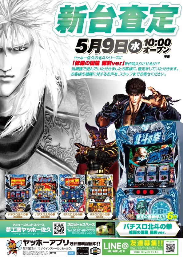 スロットスペースは【パチスロ北斗の拳 修羅の国篇 羅刹ver.】が新登場!