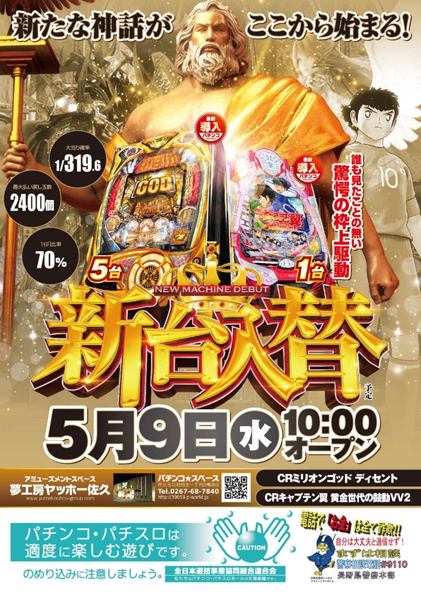 パチンコスペースに【CRミリオンゴッド ディセント】【CRキャプテン翼 黄金世代の鼓動VV2】が新登場!