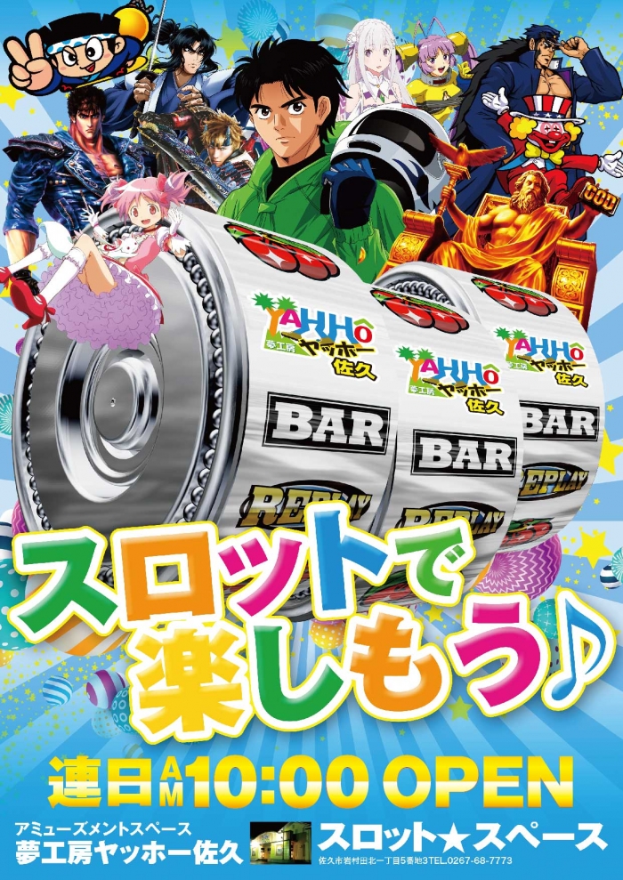 スロットスペースも元気に連日10:00OPEN!!
