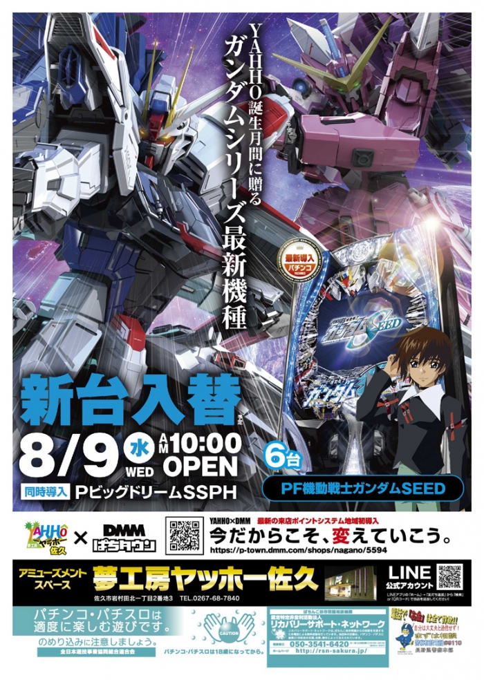 YAHHO誕生月間に贈るガンダムシリーズ最新機種「Pフィーバー機動戦士ガンダムSEED S」を6台導入。