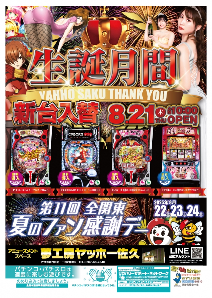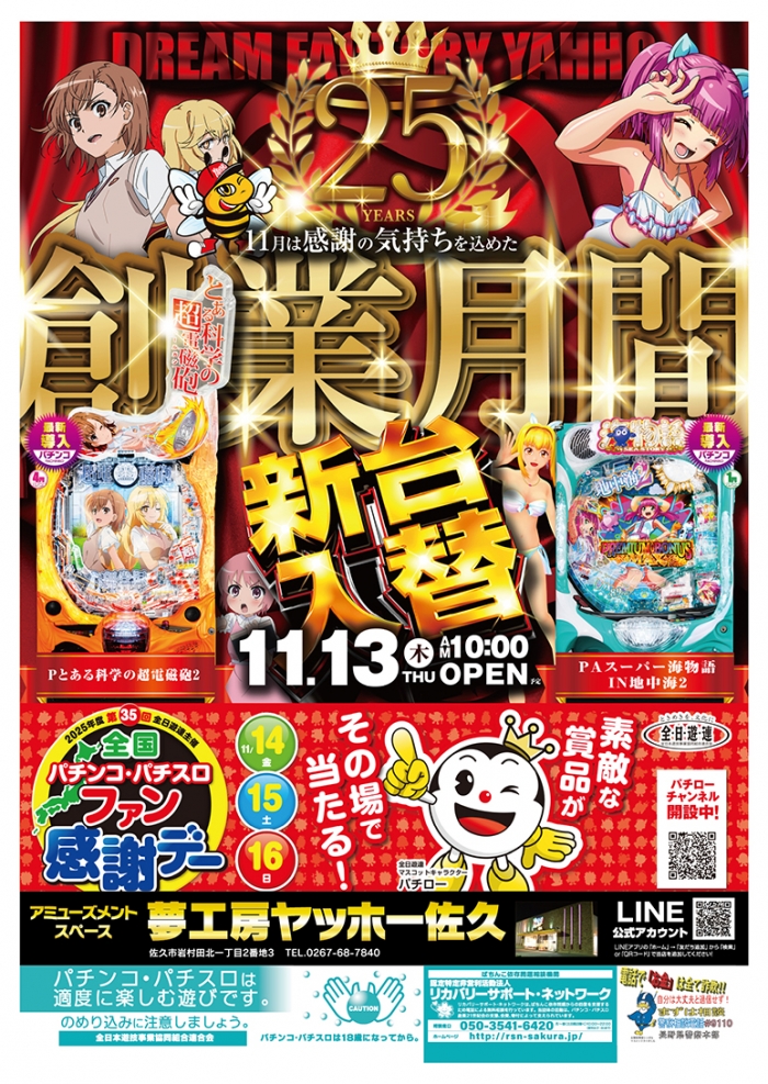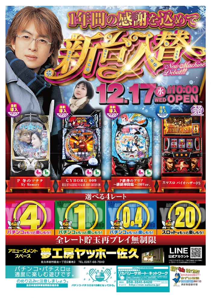 ヤッホー佐久!1年間の感謝を込めて新台入替!
